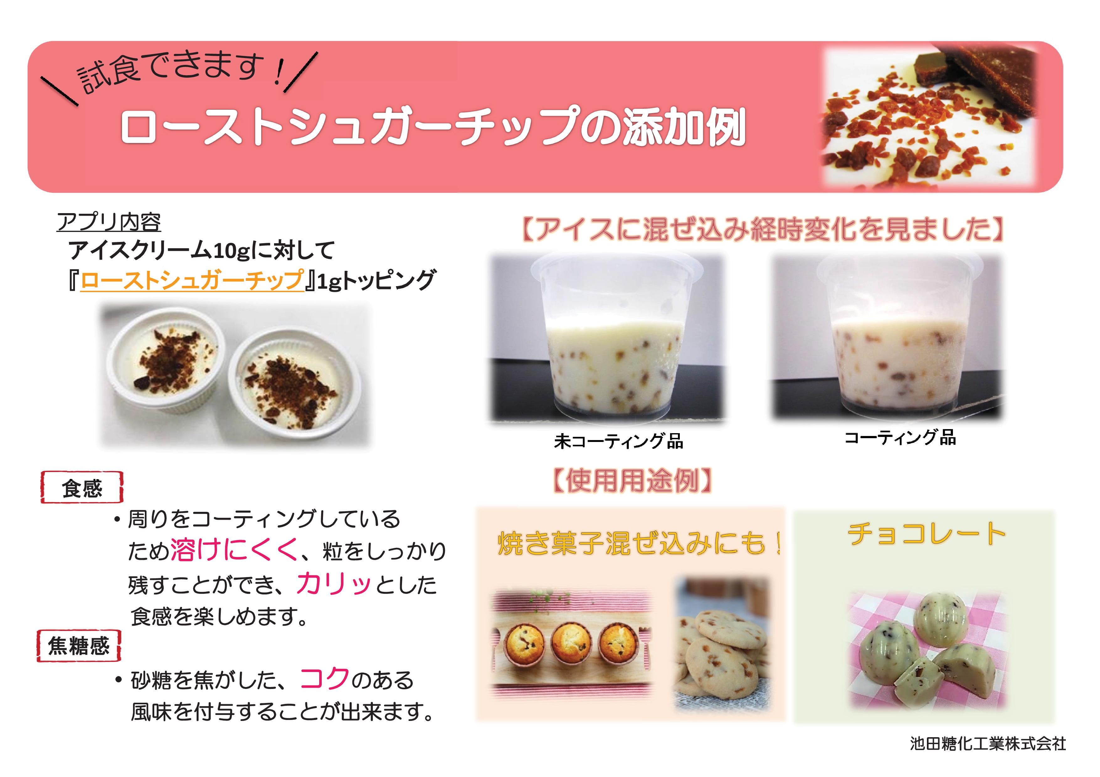 このイベントでは、弊社の焙焼技術を利用したローストシュガーチップを始めとする一押し商品を中心に、開発担当者からの熱い想いと共に、試食等を交えながらご紹介させていただき、多くのお客様にご好評をいただきました。